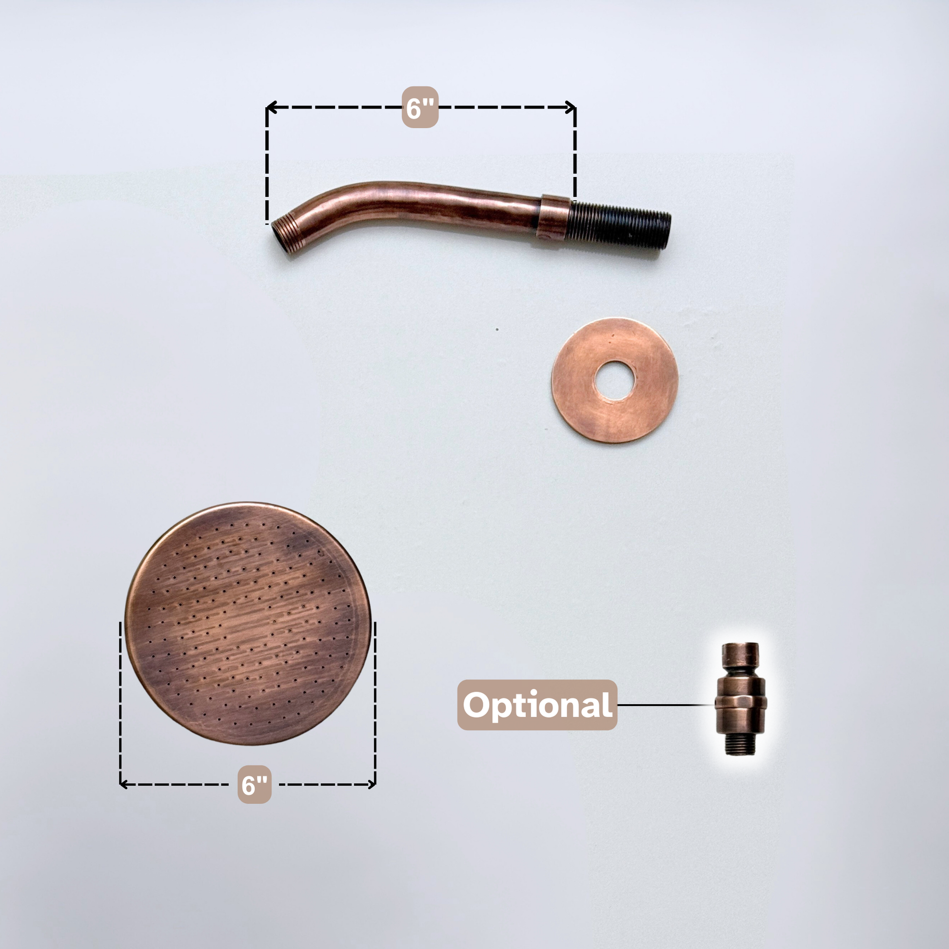 This Antique Copper Rain Shower Head with Straight Arm is crafted from premium solid brass and finished in a striking antique copper tone that brings warmth and timeless character to any bathroom. The flat rain shower head delivers a soothing rainfall effect, while the straight arm offers a clean, streamlined profile with consistent overhead water coverage. An Adjustable Shower Head Connector is available, allowing you to customize the shower angle for added comfort and precision.