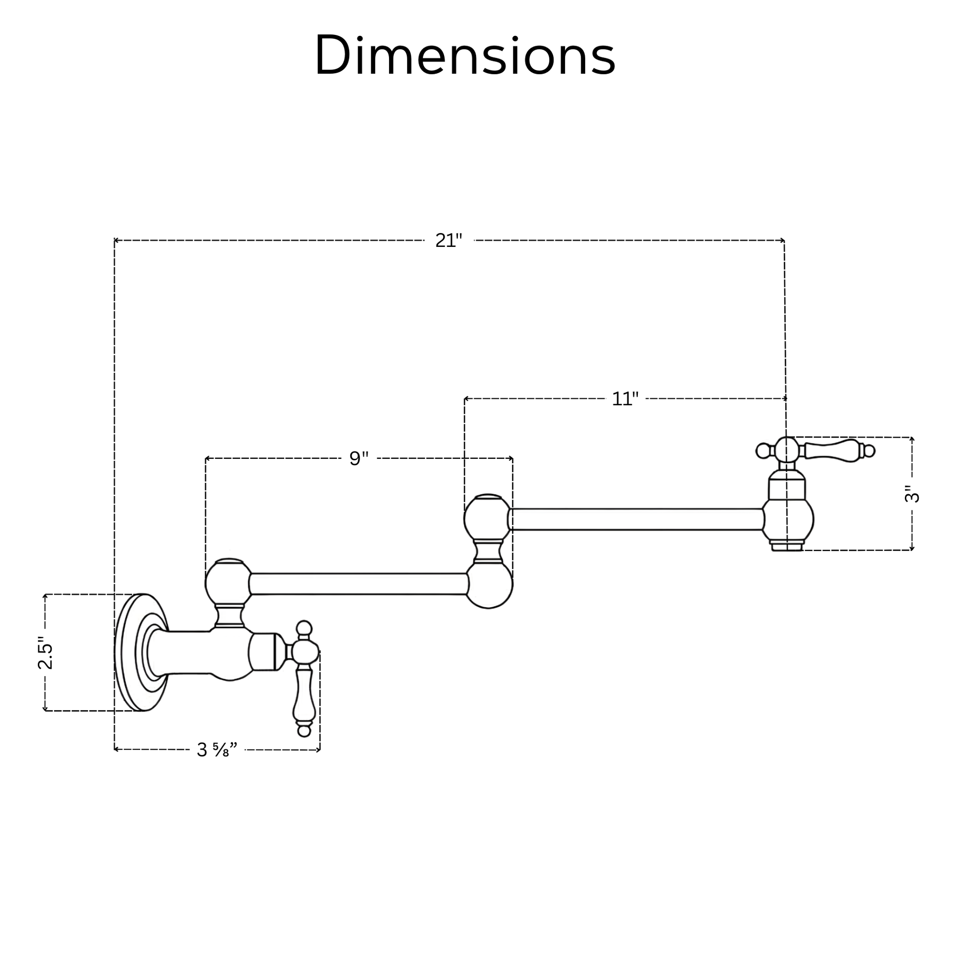 ⦁ Distance from the Wall to Spout Outlet: 21 inches