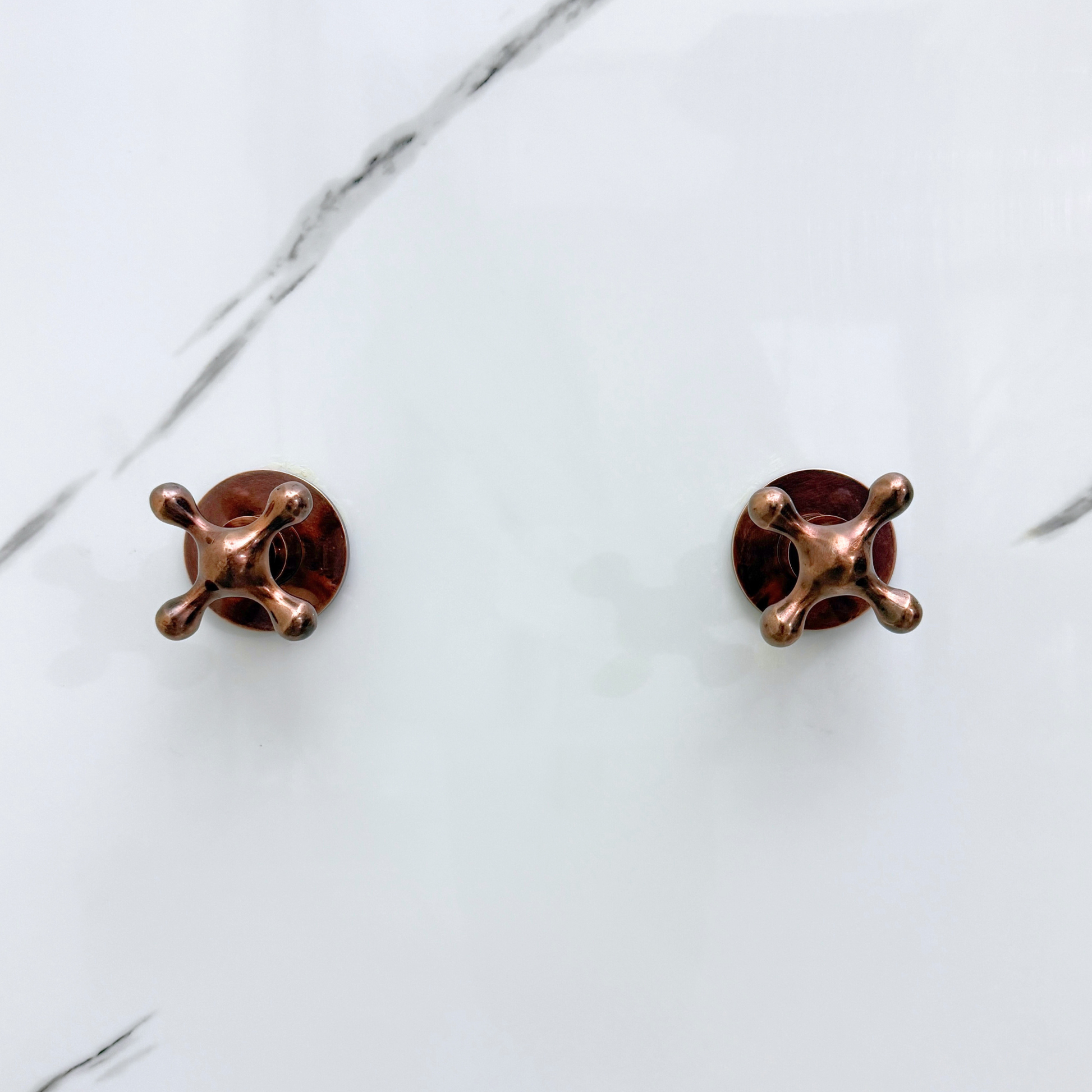 This wall-mounted shower system features a striking antique copper finish over solid brass construction, combining elegance with lasting durability. The arcuate arm supports a flat round rain shower head for a soothing rainfall effect, while the cross handles provide precise water control for an effortless and timeless shower experience. An optional Adjustable Shower Head Connector is available, allowing you to customize the shower angle for added comfort.