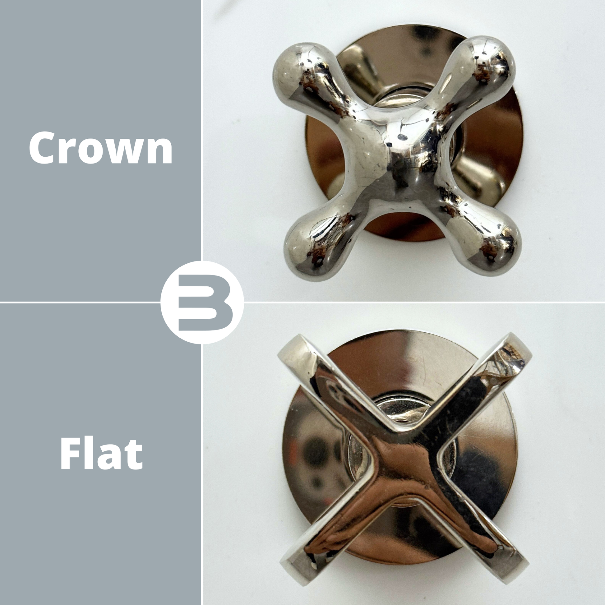 - Cross Handles – provide precise water control with a comfortable grip