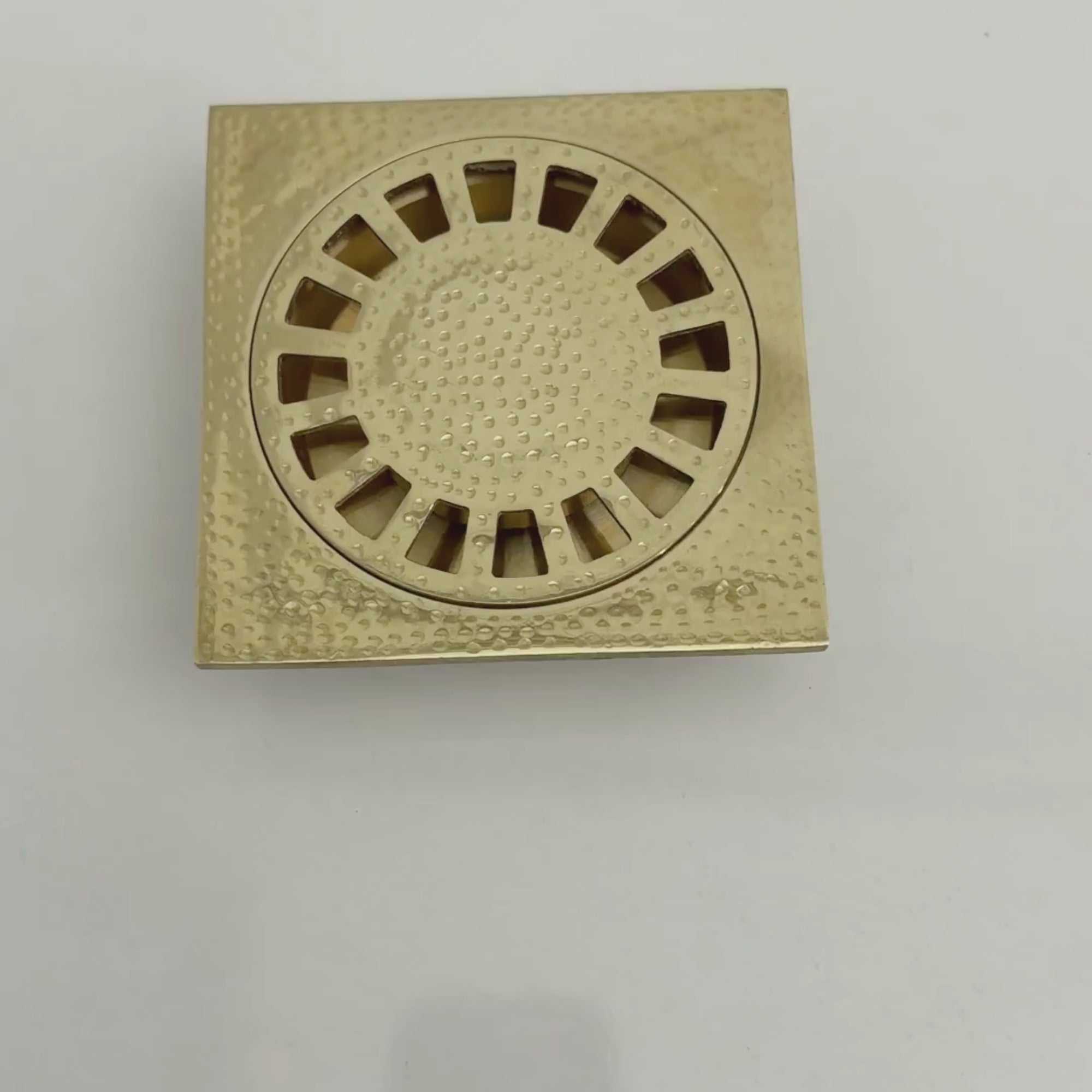 Unlacquered Brass Hammered Shower Drain with Removable Cover, Solid Brass Square Shower Drain
