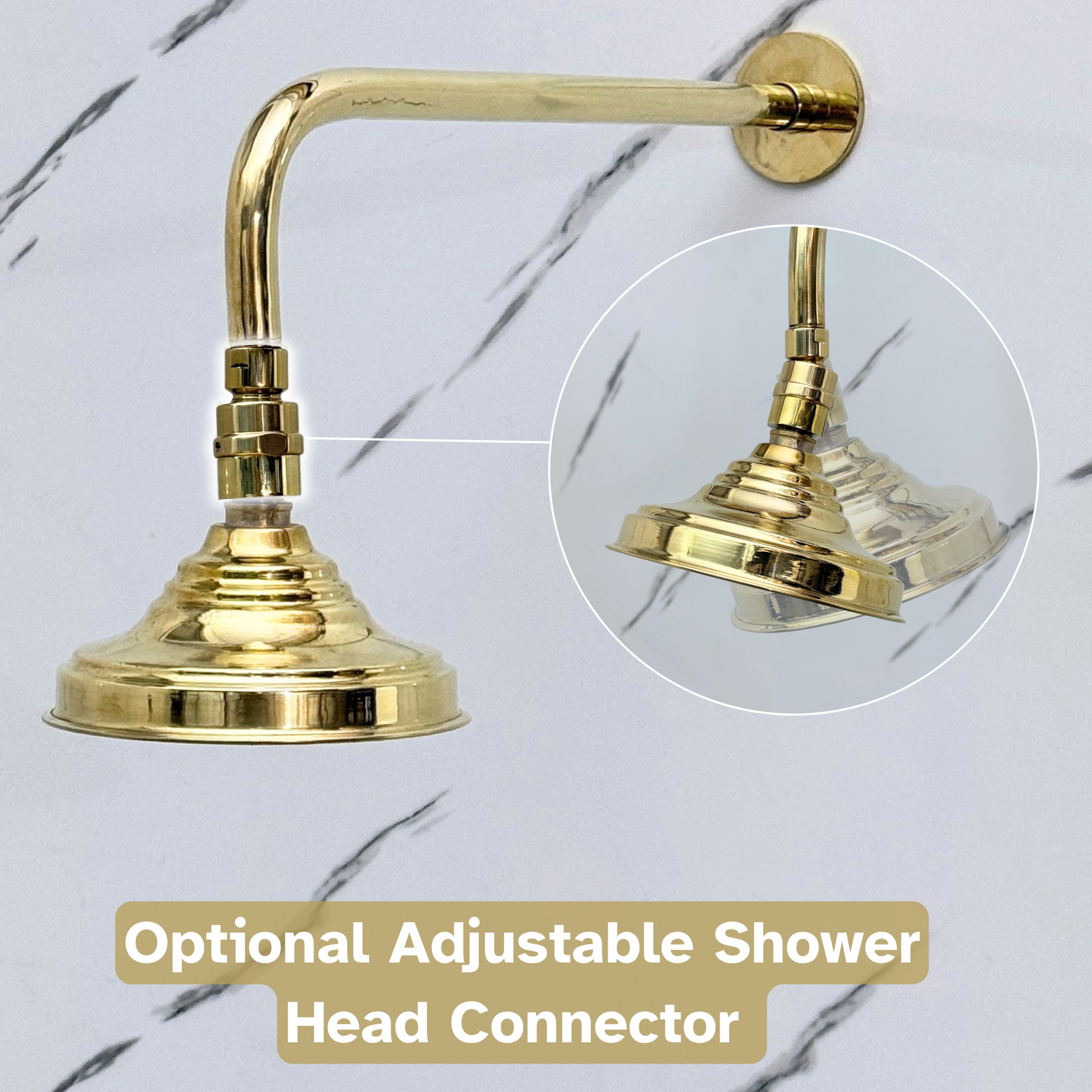 Unlacquered Brass shower system crafted from premium solid brass. Featuring a natural unlacquered finish that develops a graceful patina over time, this wall-mounted shower set combines elegance and durability. The straight arm supports a round rain shower head for a soothing rainfall effect, while the cross handles provide precise water control for an effortless and timeless shower experience. An optional Adjustable Shower Head Connector is available, allowing you to customize the shower angle for added comfort.