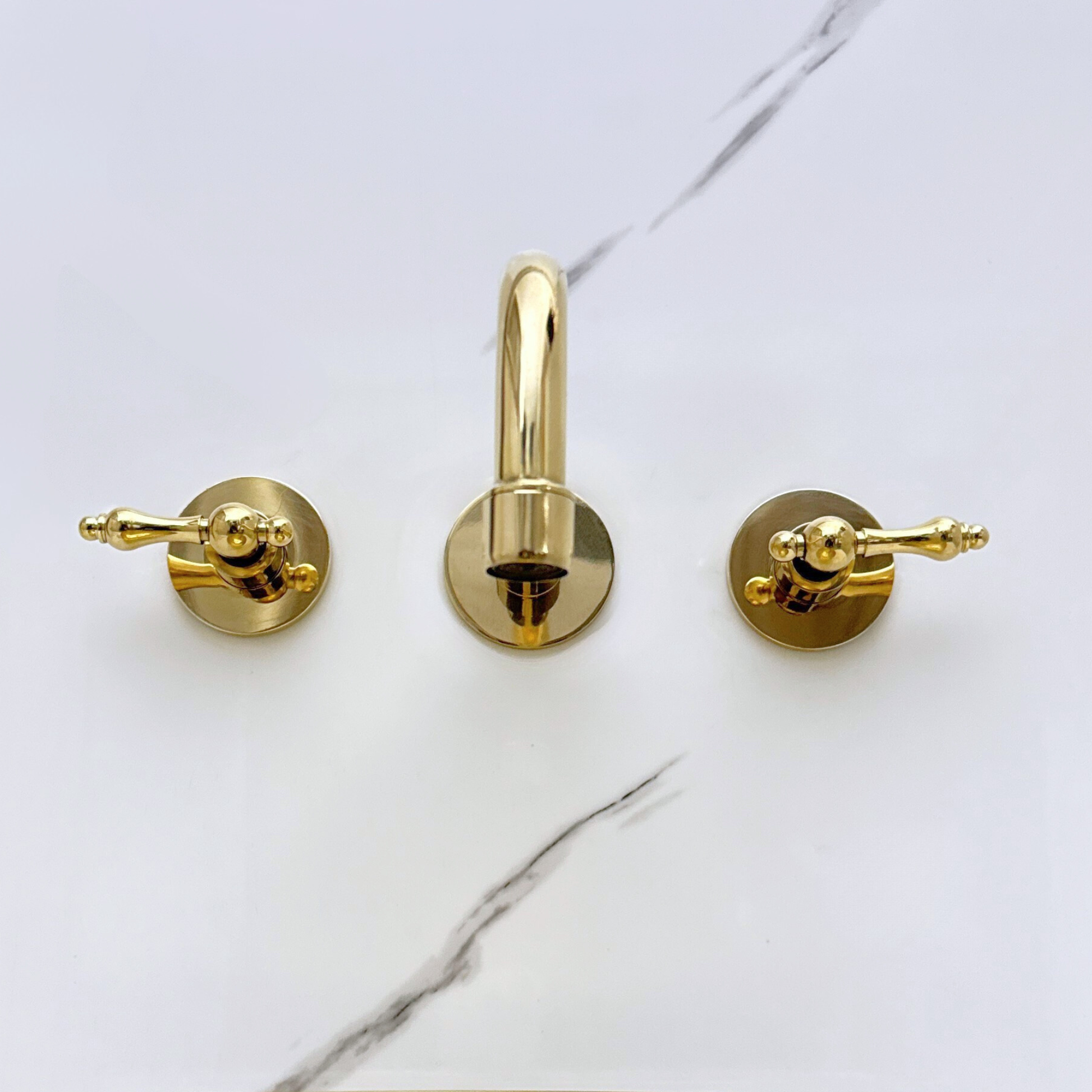Unlacquered Brass Wall Mount Bathroom Faucet with Lever handles