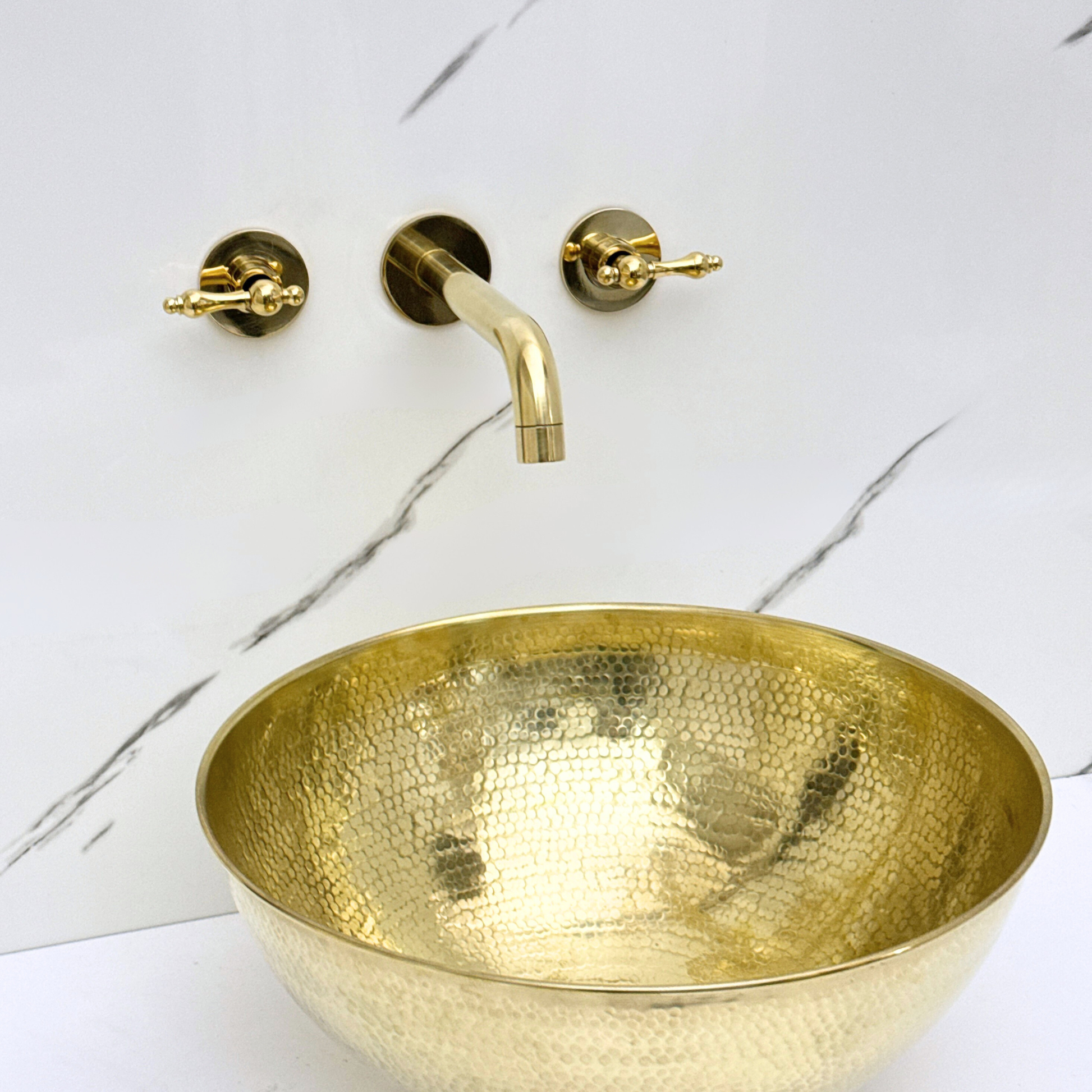 Elevate your bathroom with the sculpted elegance of our Unlacquered Brass Wall-Mount Faucet. Crafted from premium solid brass, it features a natural unlacquered finish that develops a graceful patina over time. Featuring a sleek curved spout and ergonomic lever handles, it offers a refined aesthetic and effortless control, making it a timeless centerpiece for any bathroom.
